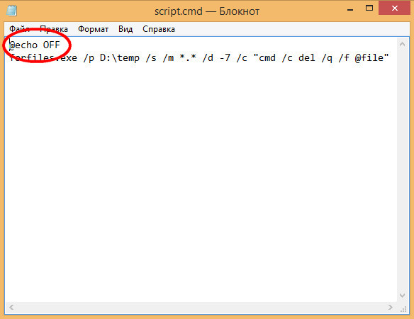 echoРежим вывода команд на экран. При включении, командная строка выведет на экран сообщение о совершенном действии. При отключении, соответственно, сообщения пропадут